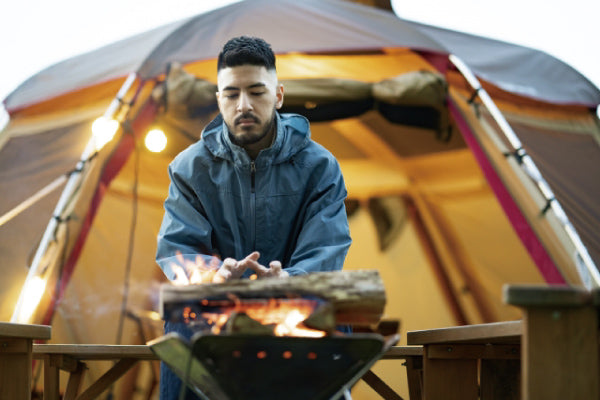 Moëz is a flame-retardant material that responds to the desire to enjoy fashion even in outdoor scenes such as camping. One of the joys of camping is the campfire scene, where people often wear synthetic fibers, which can cause holes in their favorite clothing from firewood splattering. Flame-retardant materials are resistant to fire sparks that may fly into the wears or get on them unnoticed, but they do not spread easily, leaving only burn marks, holes, and scratches.